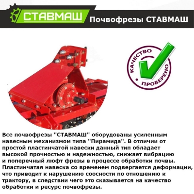 Предлагаем Вашему вниманию облегченную почвофрезу с шестеренчатым редуктором. Это фреза облегченного типа для тракторов мощностью от 18 до 22 л.с. На фрезе установлен редуктор облегченной версии. Практика показала, что при обработке легких и тяжелых вспаханных почв облегченной фрезой результат такой же, как при обработке усиленной фрезой и есть ряд других плюсов, а именно: низкая стоимость, возможность агрегатировать с маломощными тракторами, малая конструкционная масса и соответственно меньше нагрузка на навесной механизм трактора.