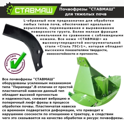 Предлагаем Вашему вниманию почвофрезу с усиленным шестеренчатым редуктором для тяжелых почв. Благодаря широким ножам, закрепленным на роторе с помощью двух болтов, фреза легко справляется с уплотненным и каменистым грунтом. Ножи расположены по 6 шт. на каждом диске ротора, количество зависит от рабочей ширины захвата. Рама почвофрезы сварная из прочного металла, надежный механизм крепления, покраска порошковая горячая. Гарантия 1 год. Карданный вал в комплекте!