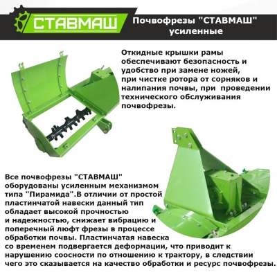 Предлагаем Вашему вниманию почвофрезу с усиленным шестеренчатым редуктором и прочными креплениями ножей. Крошение почвы происходит в результате вращения ножей, закрепленных на роторе фрезы. Ножи имеют саблевидную форму, самозатачивающиеся. Рама почвофрезы сварная из профильной металлической трубы, надежный механизм крепления, покраска порошковая горячая. Гарантия 1 год. Карданный вал в комплекте!