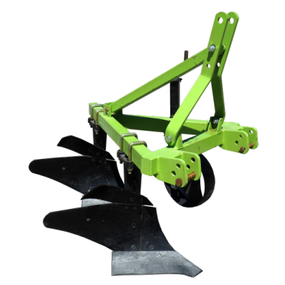 Плуг лемешный навесной общего пользования предназначен для основной отвальной обработки почвы - вспашки, с помощью трактора. Применяется для частичного перемешивания, измельчения, рыхления, оборота почвы с целью глубокого заложения в почву наземных растительных остатков, проросших зачатков сорняков для их дальнейшего качественного перегнивания, возбудителей болезней культурных растений для их последующего уничтожения, увеличение пористости и степени аэрации, создание более однородного обрабатываемого слоя и насыщения данного слоя влагой в зимний период. Может агрегатироваться с тракторами имеющими стандартную 3-точечную навесную систему. Рама сварная из трубы прямоугольного сечения. Глубина вспашки регулируется с помощью винтовой пары и опорного колеса.