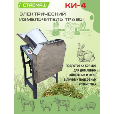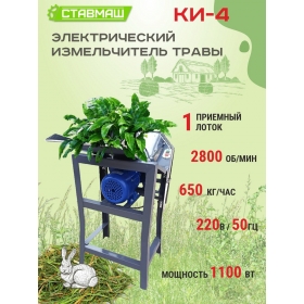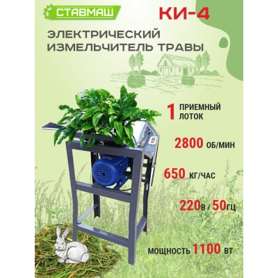 Кормоизмельчитель Ставмаш КИ-4 предназначен для переработки корнеплодов, стеблей и травы. Эффективность переработки (650 кг/час) достигается применением плоских ножей в конструкции данного кормоизмельчителя Ставмаш КИ-4. Также на высокую производительность влияет качественный электродвигатель с внушительными показателями мощности в 1100 Вт и высокий показатель оборотов измельчающего аппарата (2800 об/мин)