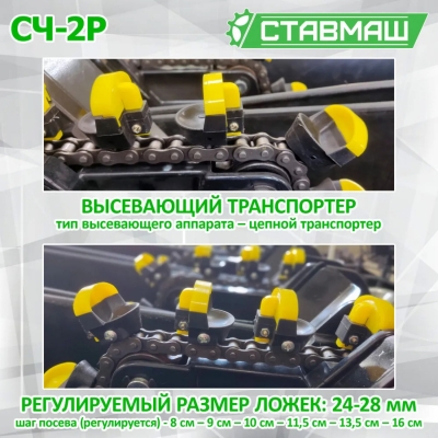 - Регулировка шага посева: оснащена 6-ти ступенчатым редуктором для регулировки расстояния между луковицами в ряду