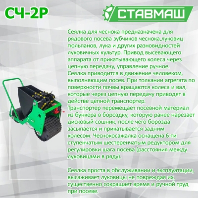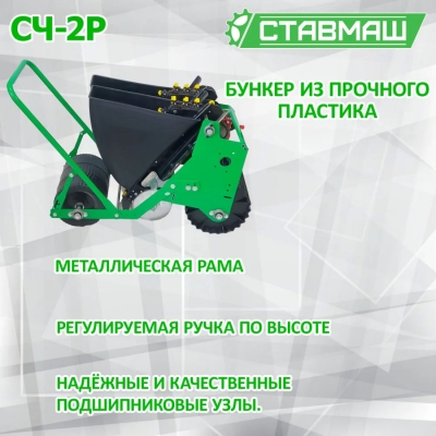 Сеялка для чеснока ручная СЧ-2Р (двухрядная) от бренда Ставмаш предназначена для рядного посева зубчиков чеснока, луковиц тюльпанов, лука и других разновидностей луковичных культур.