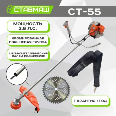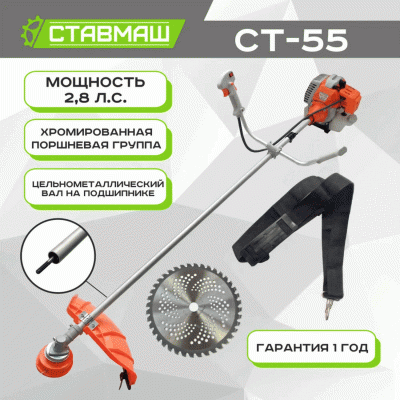 Ставмаш СТ-55 - бензиновый триммер мощностью 2.8 л/с и шириной кошения до 440 мм.