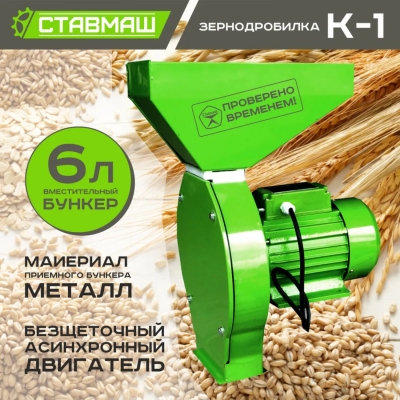 Кормоизмельчитель Ставмаш К1 - зернодробилка мощностью 1900 Вт и производительностью 300 кг/ч