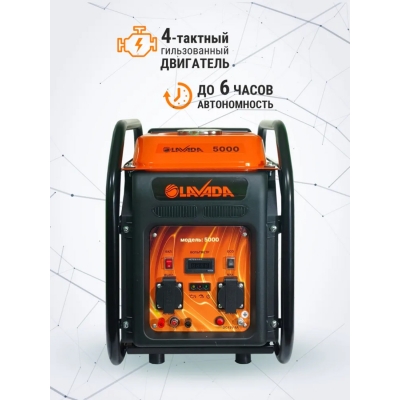 Данный бензиновый генератор оснащен инновационным карбюраторным двигателем мощностью 7 л.с., который обеспечивает стабильное напряжение 220 В и чистую синусоиду. Это позволяет безопасно подключать чувствительную электронику, что особенно важно для кемпинга или на даче. С объемом топливного бака в 8 литров и расходом топлива всего 1.3 л/ч, генератор Lavada 5000 может работать до 6 часов на полном баке, предоставляя вам необходимую автономность.