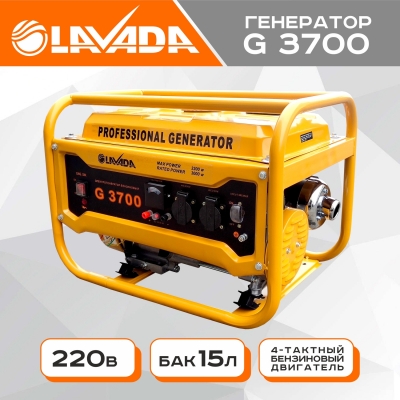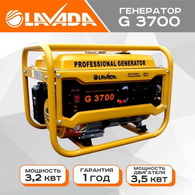 Бензиновый генератор Lavada G 3700 служит для автономного энергоснабжения однофазных бытовых приборов до 3.2 кВт. Модель Lavada G 3700 вырабатывает постоянный ток напряжением 12 В, что дает возвожность заряжать кислотные аккумуляторы. Так же для удобства эксплуатации в конструкции бензогенератора использован вольтметр и индикатор напряжения.