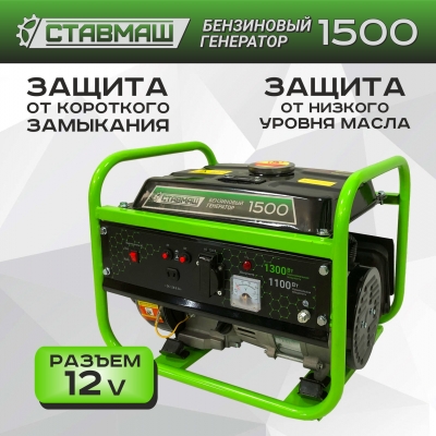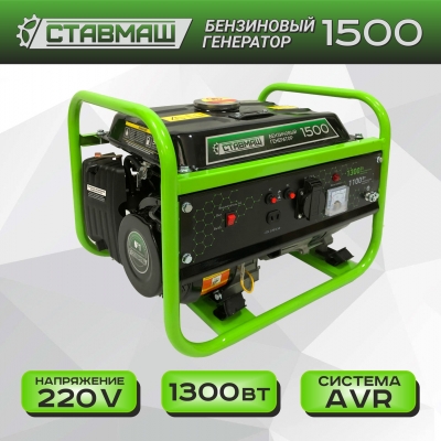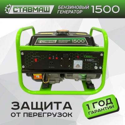 Ставмаш 1500 - бензиновый генератор синхронного типа, с четырехтактным двигателем и суммарной мощностью подключаемых потребителей 1500 Вт.