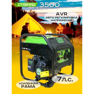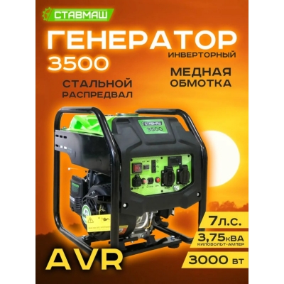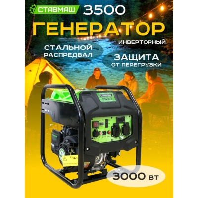 Ставмаш 3500 - бензиновый генератор инверторного типа, с четырехтактным двигателем и суммарной мощностью подключаемых потребителей 3000 Вт.