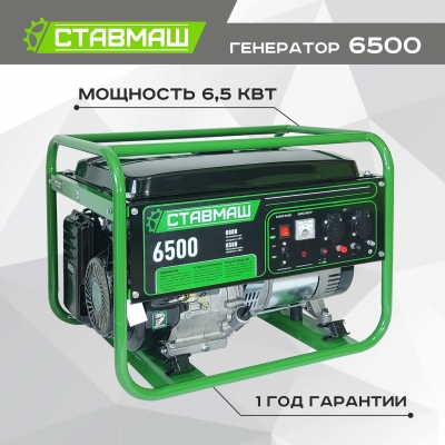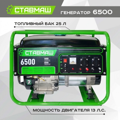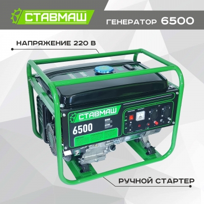 Ставмаш 6500 - бензиновый генератор синхронного типа, с четырехтактным двигателем и суммарной мощностью подключаемых потребителей 6500 Вт.