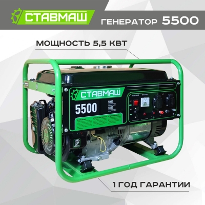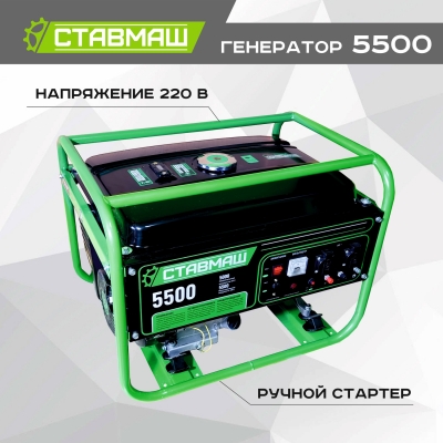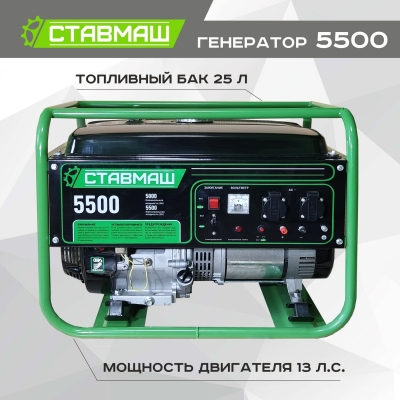 Ставмаш 5500 - бензиновый генератор синхронного типа, с четырехтактным двигателем и суммарной мощностью подключаемых потребителей 5500 Вт.