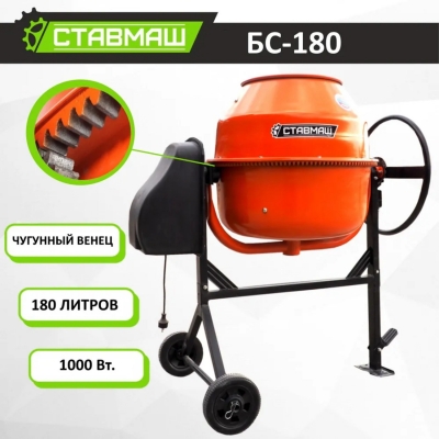 Ставмаш БС-180 - бытовая бетономешалка мощностью 1000 Вт и объемом 180 л.