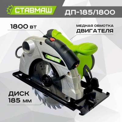 Дисковая пила Ставмаш ДП-185/1800 используется для прямолинейной распиловки древесины и её производных в бытовых условиях.