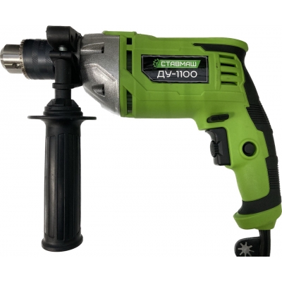 Ставмаш ДУ- 1100 – сетевая электрическая дрель, предназначенная для высверливания отверстий в твердых материалах обладающих различной плотностью, а при наличии соответствующей оснастки можно выполнять работу с крепежными элементами.Дрель обладает двойной изоляцией всей электрической составляющей, что в значительной мере поднимает ее уровень безопасного использования. Включатель с клавишей и фиксатором для продолжительной работы. Быстрозажимной патрон, регулировка числа оборотов, реверс.