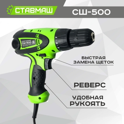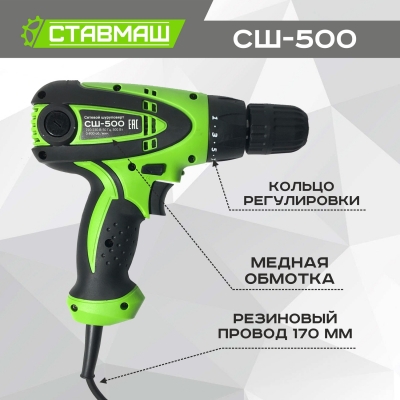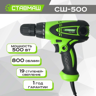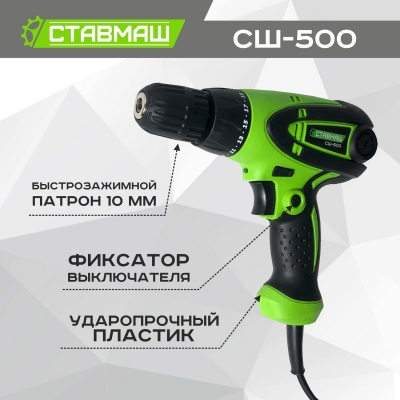 Шуруповерт сетевой Ставмаш СТ-500 это ручной электроинструмент для закручивания и отвинчивания крепежного элемента. Подключается к однофазной бытовой розетке на 220 Вт.