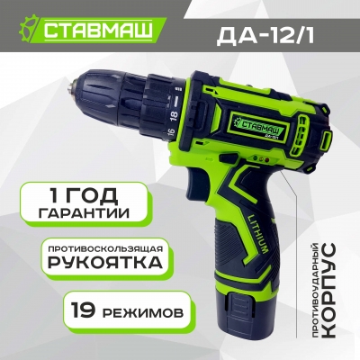 Шуруповерт Ставмаш ДА-12/1 используется при строительных, слесарно-монтажных работах. Помогает быстро высверливать отверстия нужного диаметра как на деревянной, так и металлической поверхности, быстро выкручивать или извлекать крепеж.