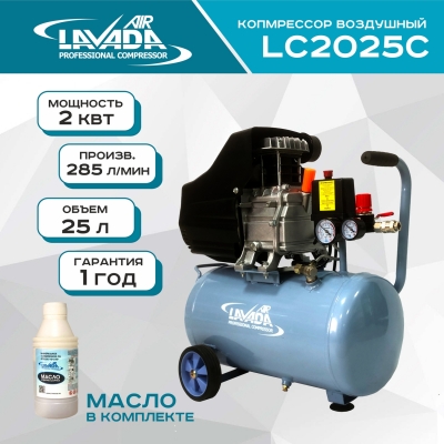 Воздушный масляный компрессор Lavada LC2025C - механическое устройство, предназначенное для нагнетания сжатого воздуха в различное пневмооборудование.
