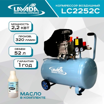 Воздушный масляный компрессор Lavada LC2052C - механическое устройство, предназначенное для нагнетания сжатого воздуха в различное пневмооборудование.
