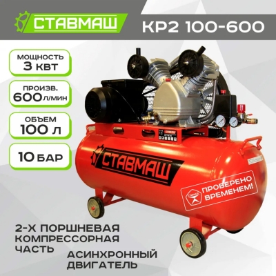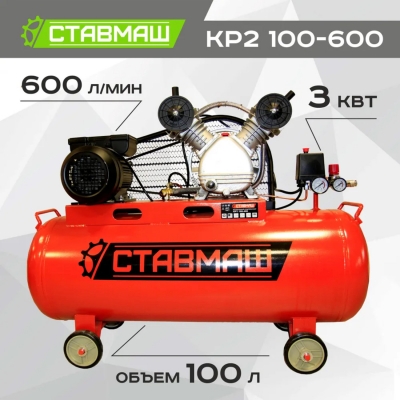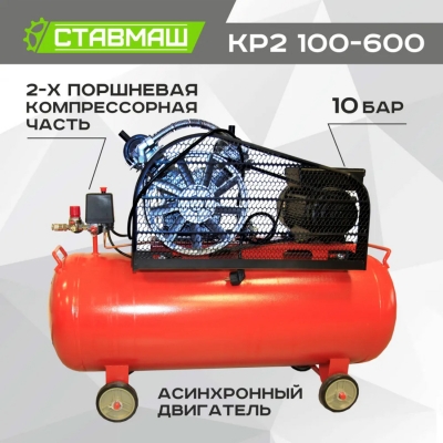 Ставмаш КР2 100-600 - поршневой масляный компрессор с объемом ресивера 100 литров и производительностью 600 л/мин.