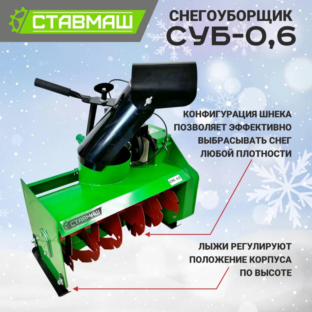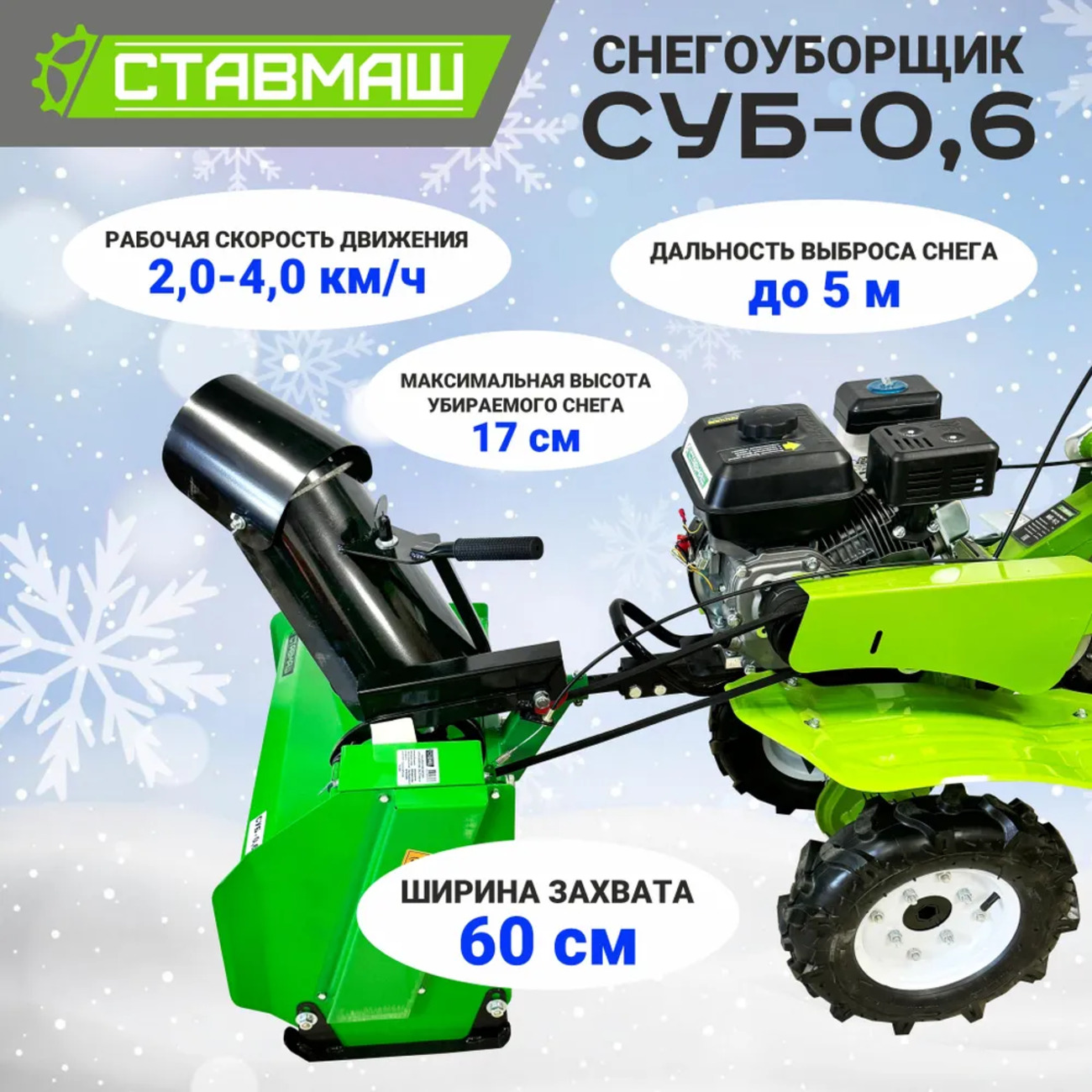 Не упустите возможность провести зиму комфортно и без лишних хлопот. Снегоуборщик СУБ-0,6 – это надежное решение для вашего дома и сада, позволяющее эффективно справляться с зимними трудностями. Приобретите его и убедитесь в том, что снег больше не станет для вас проблемой.
