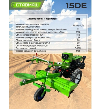 Различаются агрегаты по мощности, ширине захвата обрабатываемой земли, весу и типу двигателя.