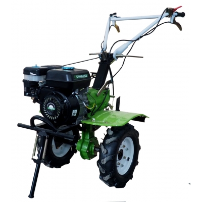 с повышенным запасом прочности. Оснащен валом отбора мощности (ВОМ), многодисковым сцеплением в масляной ванне и шестеренчатым редуктором. 3-х ступенчатая трансмиссия позволяет выбрать режим обработки почвы. Укрепленная рама с универсальной сцепкой - для установки навесного оборудования или использования тележки. К ВОМ можно подключить активное оборудование.