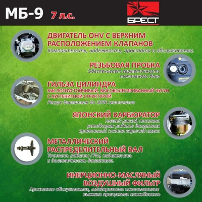 Мотоблок Брест МБ-9 бензин 7 л.с.