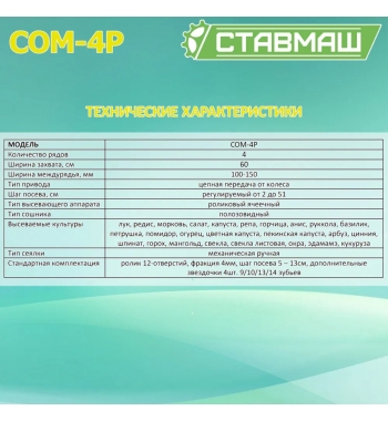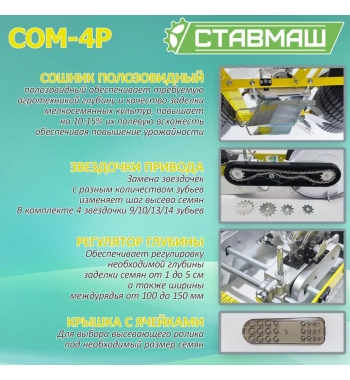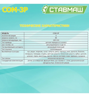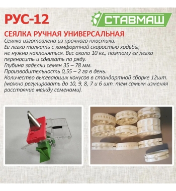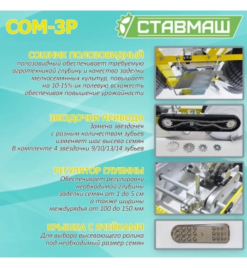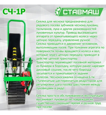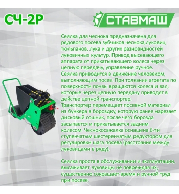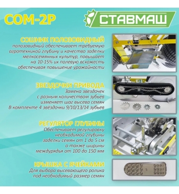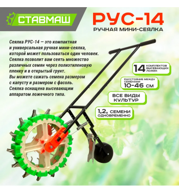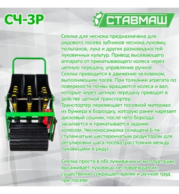 Сеялки овощные мелкосемянные торговой марки «СТАВМАШ» предназначены для посева всех видов овощных и мелкосемянных культур таких как: лук, редис, морковь, салат, капуста, репа, горчица, анис, руккола, базилик, укроп, кинза, петрушка, помидор, огурец, цветная капуста, пекинская капуста, арбуз, цинния, шпинат, горох, мангольд, свекла, свекла листовая, окра, эдамамэ, кукуруза и других культур схожих по размеру семян. Сеялки просты в обслуживании и эксплуатации, все детали выполнены из качественных материалов.
