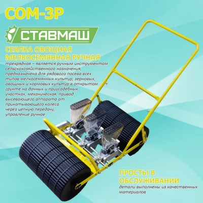 Сеялка овощная мелкосемянная Ставмаш СОМ-3 используется для посева всех видов овощных и мелкосемянных культур таких как: лук, редис, морковь, салат, капуста, репа, горчица, анис, руккола, базилик, укроп, кинза, петрушка, помидор, огурец, цветная капуста, пекинская капуста, арбуз, цинния, шпинат, горох, мангольд, свекла, свекла листовая, окра, эдамамэ, кукуруза и других культур схожих по размеру семян.