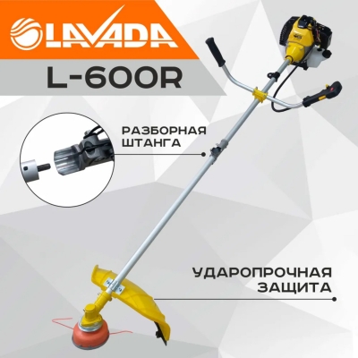 Триммер бензиновый садовый Lavada L-600R представляет собой мощное и надежное устройство для покоса газонов, полевой травы, сорняков, а также ликвидации зарослей кустарников и молодых деревьев. Модель L-600R отличается разборной конструкцией, что облегчает транспортировку и хранение.