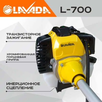 Триммер бензиновый садовый Lavada L-700 представляет собой мощное и надежное устройство для покоса газонов, полевой травы, сорняков, а также ликвидации зарослей кустарников и молодых деревьев. Модель L-700 отличается разборной конструкцией, что облегчает транспортировку и хранение.