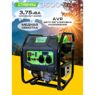Ставмаш 3500 - бензиновый генератор инверторного типа, с четырехтактным двигателем и суммарной мощностью подключаемых потребителей 3000 Вт.