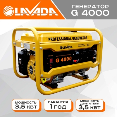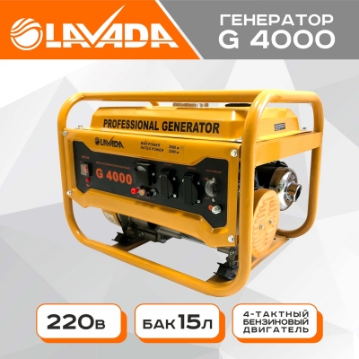 Бензиновый генератор Lavada G 4000 представляет собой небольшой и простой в использовании агрегат для питания однофазных приборов. Модель предназначается дляприменения в быту. Двигатель с воздушным охлаждением отличается долгим сроком службы и стабильностью эксплуатации. Экономичное расходование бензина обеспечивает возможность непрерывной работы оборудования на протяжении 8 часов без необходимости дозаправки (нагрузка не более 75 %) Стстема защитного отключения существенно увеличивает ресурс двигателя.