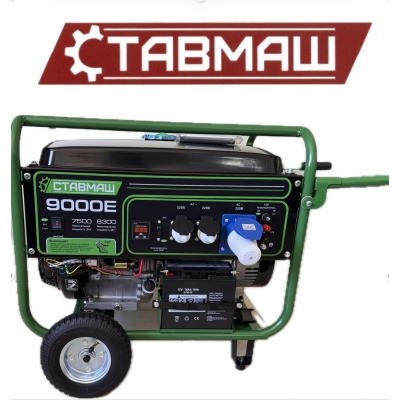 Ставмаш 9000 Е - бензиновый генератор синхронного типа, с четырехтактным двигателем и суммарной мощностью подключаемых потребителей 7500 Вт.
