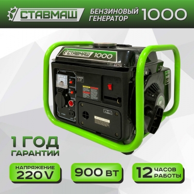 Ставмаш 1000 - бензиновый генератор синхронного типа, с двухтактным двигателем и суммарной мощностью подключаемых потребителей 950 Вт.
