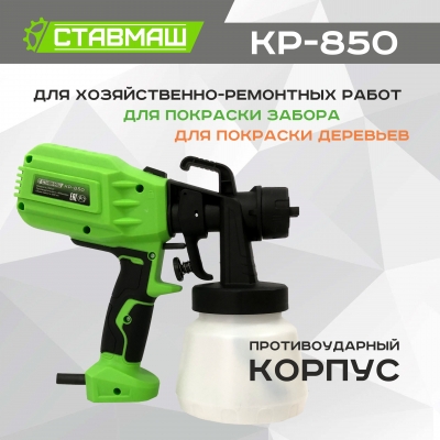 Краскопульт электрический Ставмаш КР-850 предназначен для качественного и экономичного нанесения лакокрасочных, антисептических и иных материалов практически на любую поверхость. Электрический краскопульт Ставмаш КР-850 имеет малый вес, компактный размер и имеет совершенно простую систему управления. Покупайте электрический краскопульт Ставмаш КР-850 и убедитесь во всем сами.