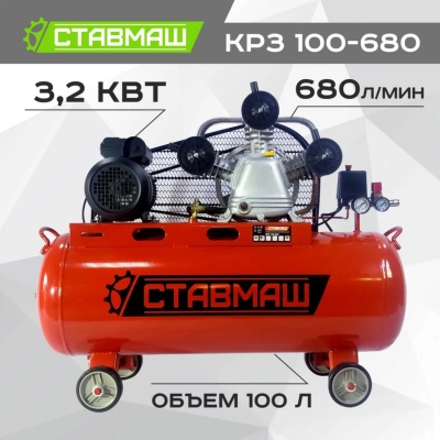 Ставмаш КР 100-680 - поршневой масляный компрессор с объемом ресивера 100 литров и производительностью 680 л/мин.