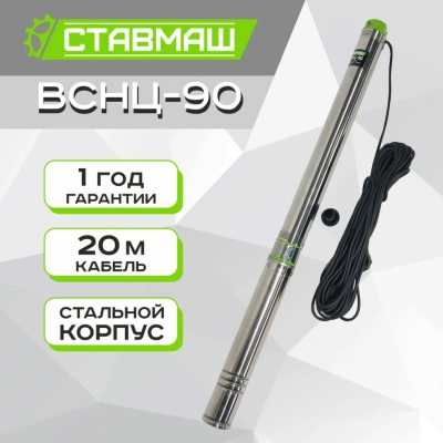 Погружной скважинный насос Ставмаш ВСНЦ-90 подходит для скважин с минимальным диаметром 85 мм. Скважинный насос Ставмаш ВСНЦ-90 служит для перекачивания воды с содержанием песка не более 150 г/м3 и размером твердых частиц не более 1 мм. Насос Ставмаш ВСНЦ-90 подходит для глубоких скважин и обеспечивает надежную работу при соблюдении всех технических требований.